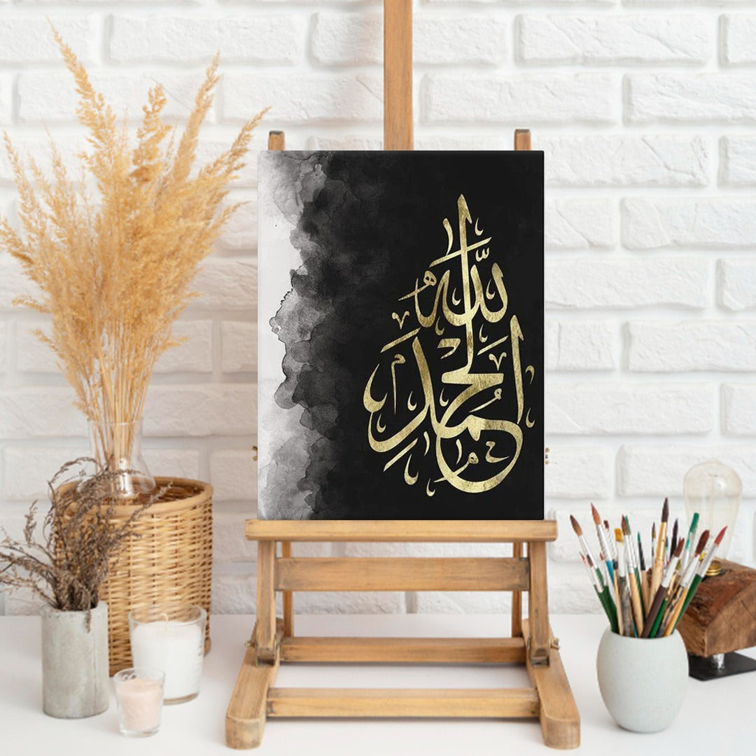 Bring a touch of spiritual elegance to your home with the "Allhumdulilah" Black & White Islamic Calligraphy handmade painting. This stunning wall art piece beautifully captures the timeless beauty of Islamic calligraphy in a minimalist black-and-white design. Perfect for enhancing any space, it serves as a reminder of gratitude and faith while doubling as an elegant decor element. Crafted with meticulous attention to detail, this canvas art is not just a decoration but a meaningful expression of belief. Ideal for living rooms, bedrooms, or prayer spaces, this wall decor is a must-have for anyone looking to add a touch of sophistication and spirituality to their home.
