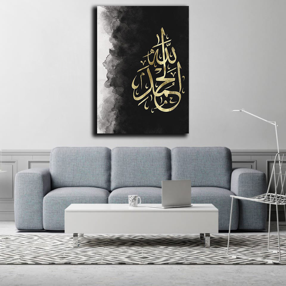 Elevate your living space with the Allhumdulilah Black & White Islamic Calligraphy Wall Art. This exquisite piece features a refined Islamic calligraphy design in a striking black and white palette, perfect for adding a touch of elegance and spirituality to any room. Crafted with high-quality canvas and designed to complement both contemporary and classic interiors, this wall art is an ideal choice for enhancing your home decor. Whether you're looking to add sophistication to your living room or create a serene atmosphere in your study, this piece serves as a beautiful focal point. Embrace the fusion of artistry and faith with this exceptional wall decoration.
