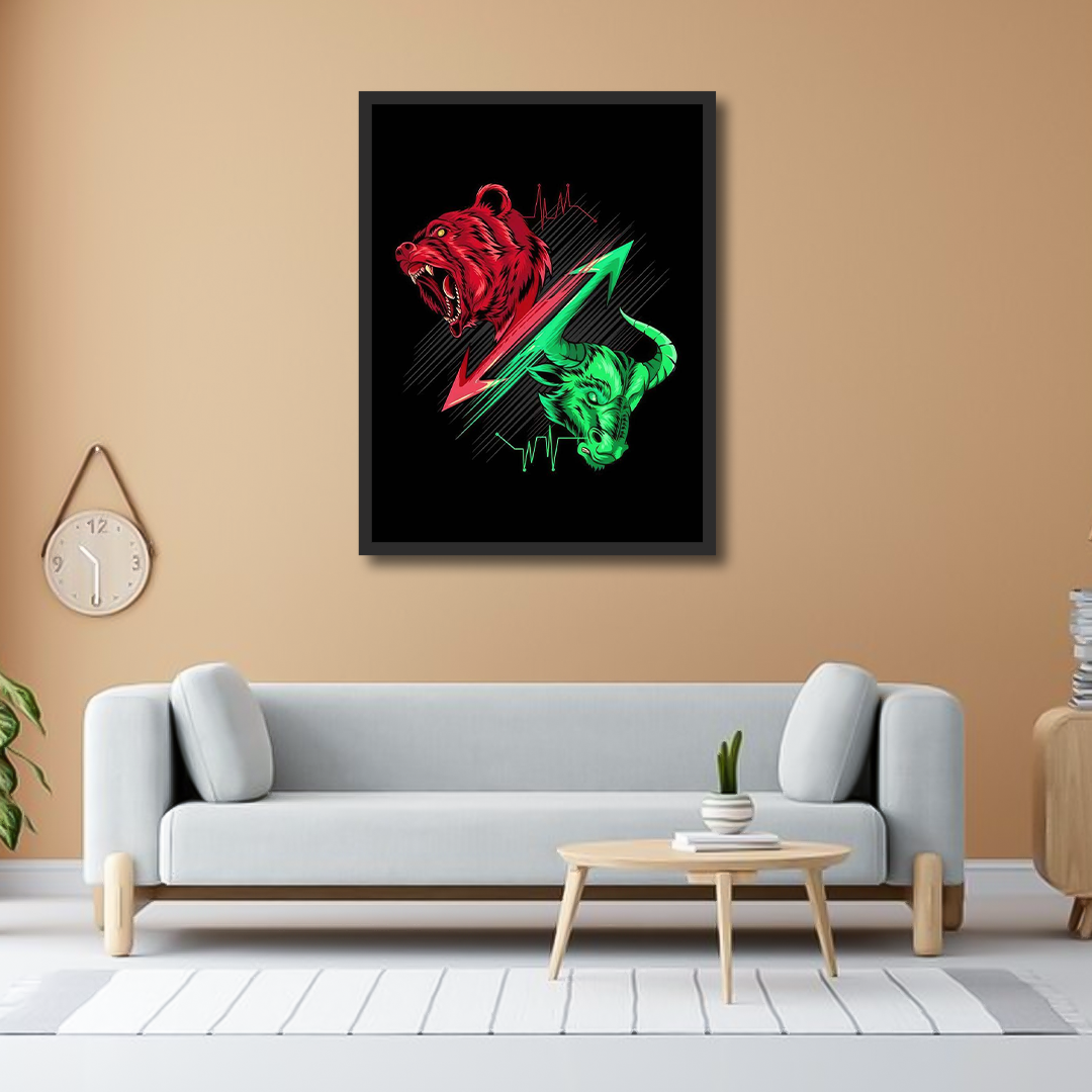 "Embrace the highs and lows of the stock market with our Bearish and Bullish Stock Market Wall Art. This captivating canvas art piece is a must-have for financial enthusiasts and traders alike. Designed with intricate details, it vividly portrays the constant battle between bears and bulls, symbolizing the fluctuating nature of the stock market. Perfect for your office, trading room, or home, this wall art not only serves as a striking visual centerpiece but also as a reminder of market trends. Crafted with high-quality materials, it's an excellent choice for those who appreciate both art and finance. Elevate your wall decor with this unique piece today!"