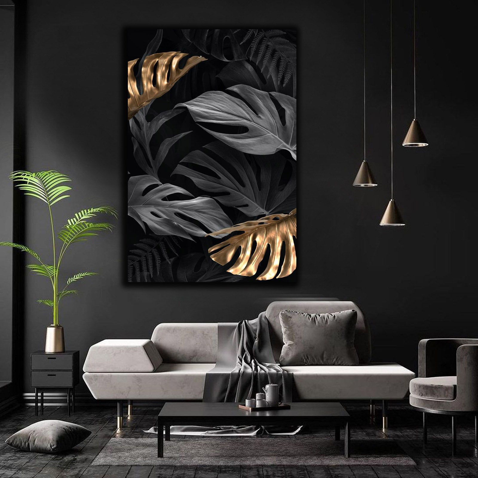 Bring the elegance of nature into your living space with the "Black Gold Leaves | Wall Art." This captivating artwork features a delicate composition of gold leaves set against a deep black background, creating a striking contrast that draws the eye. Perfect for any room, this wall art is designed to complement a variety of decor styles, from modern to classic. Crafted on high-quality canvas, this piece adds texture and depth to your walls while providing a luxurious touch. Whether you're looking to enhance your living room, bedroom, or office, this wall art is a versatile choice that adds beauty and sophistication. Embrace refined decor with this stunning leaf design, a perfect addition to your wall decorations and art collection.