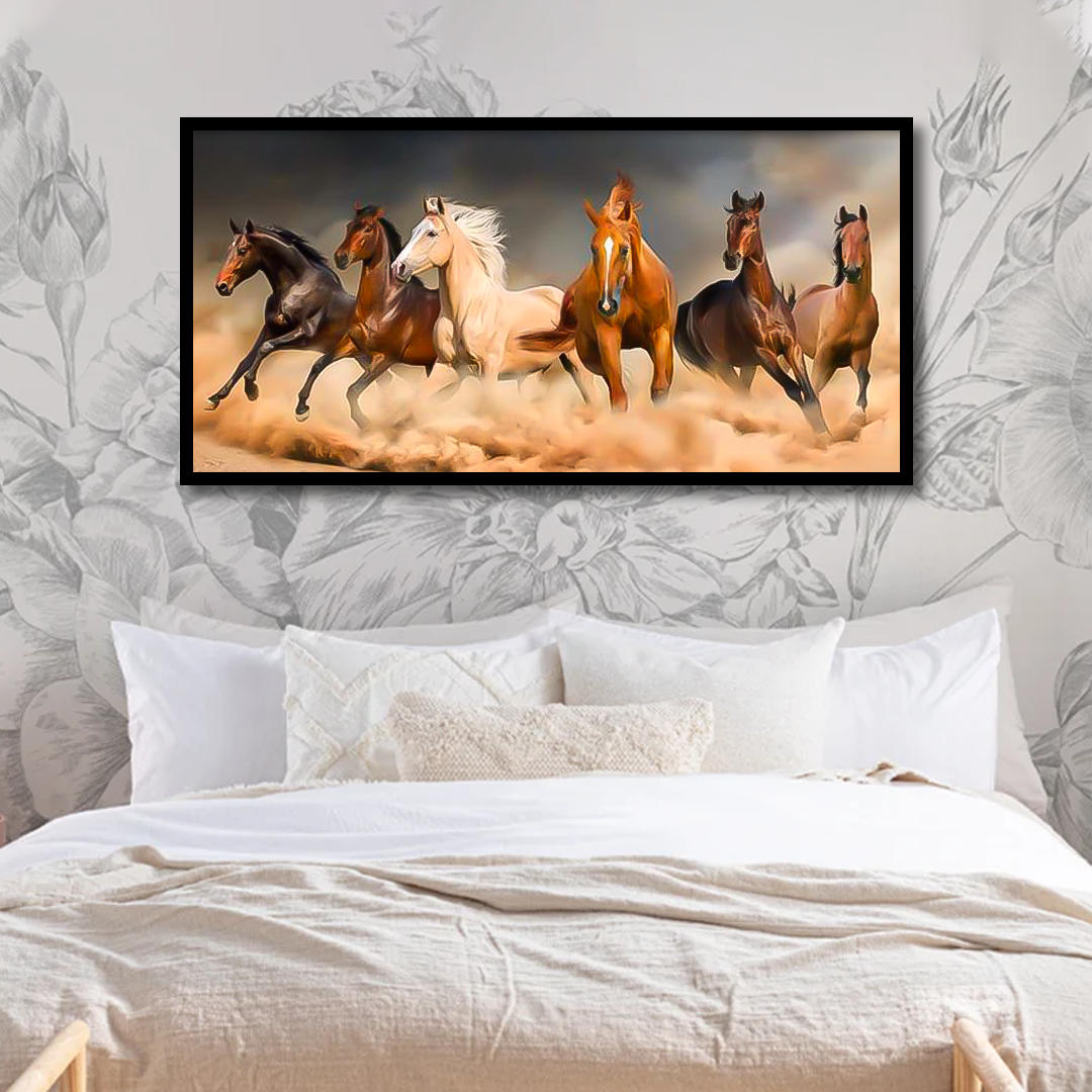Discover the beauty and grace of our Black and White Running Horses Canvas Frame, a perfect addition to any sophisticated wall decor. This stunning piece features a high-contrast depiction of horses in motion, bringing a sense of freedom and elegance to your living space. The sleek, modern frame complements the black and white artwork, making it a versatile choice for various interior styles. Crafted with attention to detail, this canvas art offers a timeless and dramatic visual impact. Ideal for enhancing your home with a touch of refined elegance, it also fits seamlessly with other wall decorations and frames.