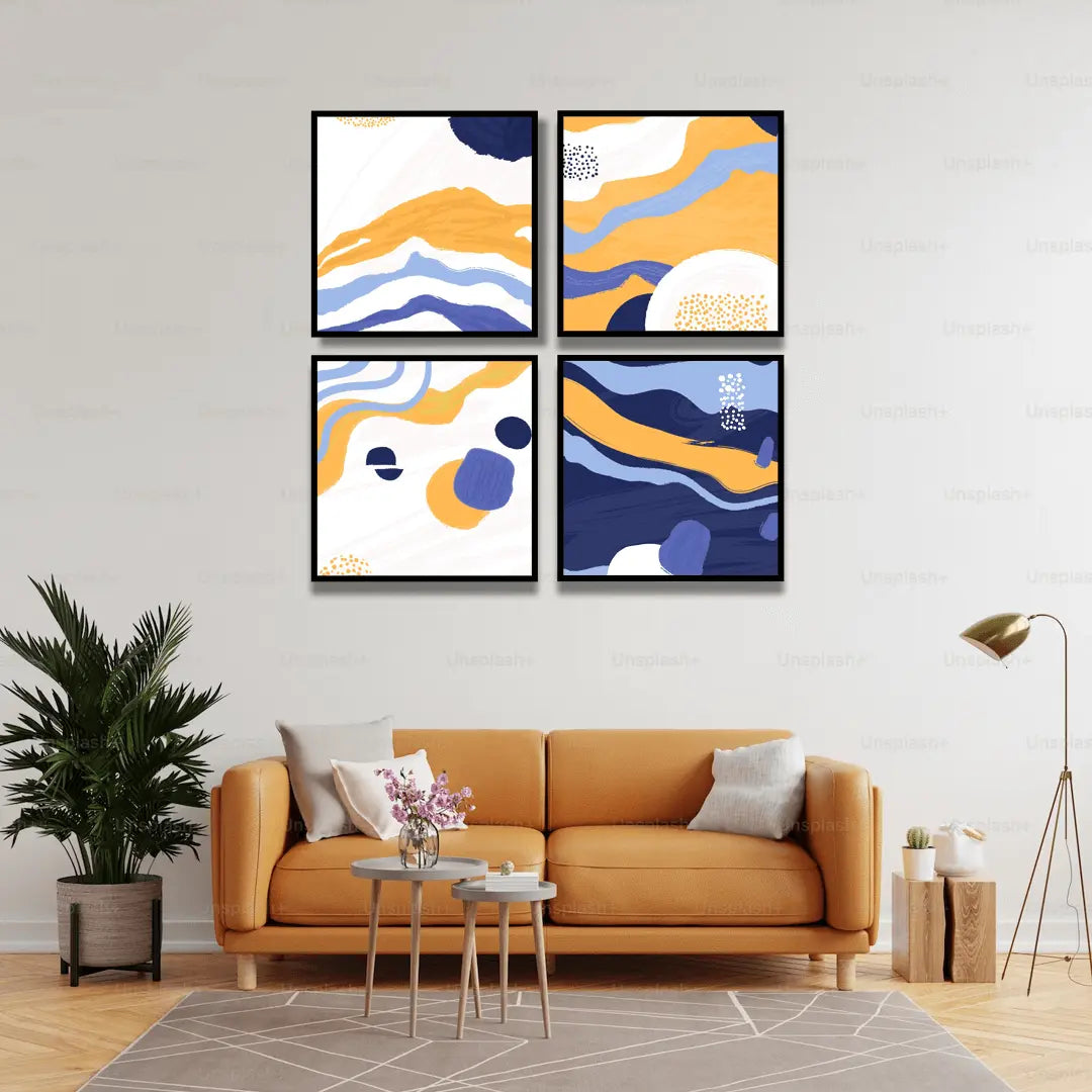 Transform your space with the Blue & Yellow Abstract (4 Panel) Wall Art. This modern and dynamic piece combines bold blue and yellow hues, delivering a striking visual effect that complements contemporary décor styles. Ideal for living rooms, bedrooms, or offices, this abstract canvas art enhances the ambiance of any room with its eye-catching design. The four-panel arrangement brings depth and movement to your walls, making it the perfect statement piece. Whether you're looking for wall decor, canvas art, or a fresh addition to your photo frame collection, this artwork brings a pop of color and sophistication. Perfect for any interior design in Pakistan.