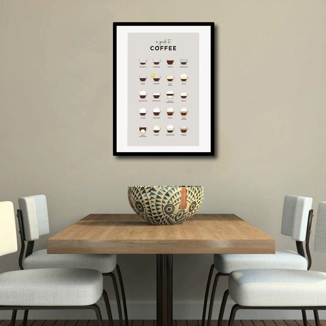 Elevate your space with our Classic Coffee Types Canvas Frames Wall Art. This unique piece celebrates the art of coffee, showcasing various types of coffee drinks in a chic, minimalist design. Ideal for coffee enthusiasts, it makes a fantastic addition to kitchens, dining areas, or cafés, offering both style and a touch of warmth. The canvas art combines high-quality prints with sleek frames, making it a versatile choice for any décor style. Whether you’re looking to upgrade your wall art painting collection or searching for the perfect wall décor to personalize your home, this piece is sure to impress. Bring the essence of a coffeehouse into your space with this stunning wall picture.