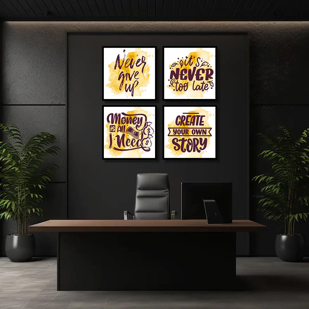 Elevate your living or working space with our Colorful Typography Motivational Quotes (4 Panel) Wall Art. This stunning wall art painting is more than just decor; it's a daily reminder of positivity and inspiration. Each panel features a unique, eye-catching design that combines vivid colors with powerful motivational quotes. Perfect for bedrooms, offices, or any area where you seek encouragement and creativity, this canvas art creates an engaging focal point on your walls. Made with high-quality materials, this wall decor is designed to last, bringing joy and motivation to your environment.