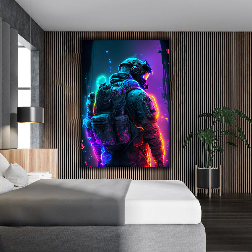 Transform your space with the "Dystopian Hunter" wall art, a mesmerizing piece that merges futuristic themes with artistic expression. This eye-catching canvas art piece is perfect for those seeking to add a unique touch to their wall decor. The intricate design features a bold, dystopian theme that stands out, making it an ideal choice for modern wall art enthusiasts. Whether you're revamping your home or adding a distinctive element to your office, this wall painting offers both style and sophistication. Elevate your wall decoration with this stunning art design, crafted to make a statement in any setting.