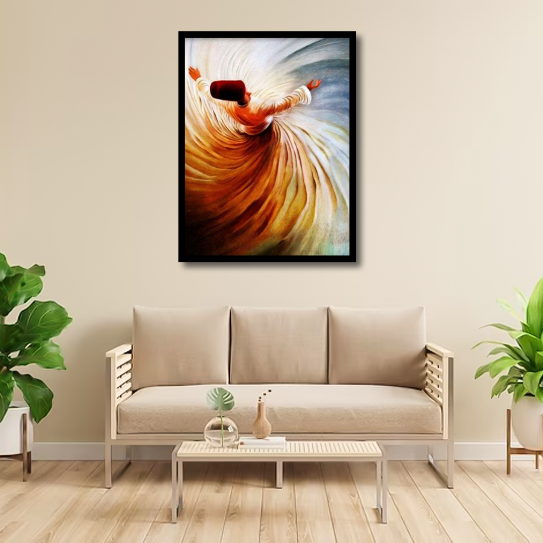 Immerse yourself in the spiritual beauty of the Islamic Sufi Whirling Dervish Canvas Frames. This exquisite piece of wall art captures the mesmerizing movement of the Sufi dance, bringing a sense of tranquility and grace to any room. Crafted with high-quality materials, this wall decor serves as a profound statement in your home or office. Ideal for those who appreciate the deep cultural and spiritual significance of Sufi traditions, this canvas art seamlessly blends with various decor styles. Whether you're looking to enhance your living space or add a touch of inspiration, this wall art design is a perfect choice.