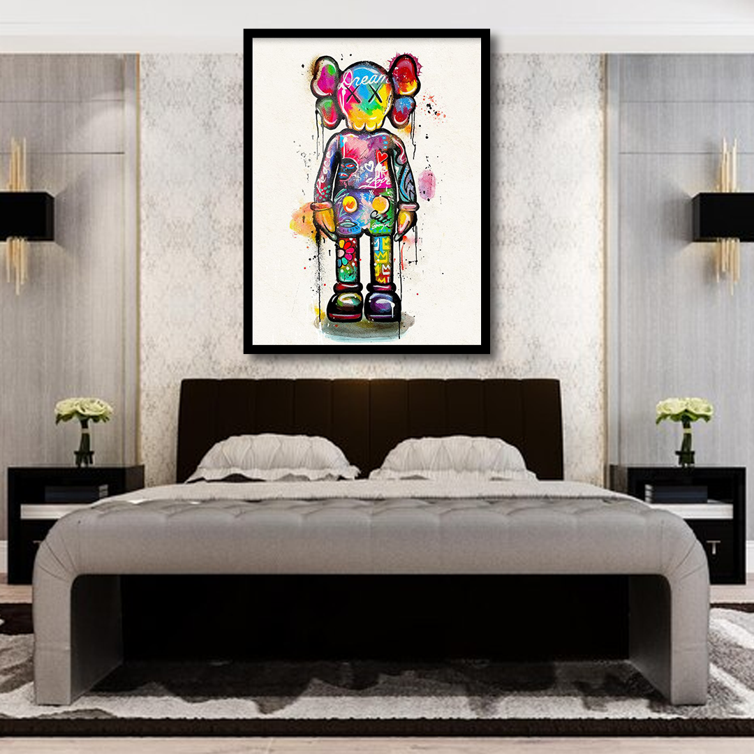 Add a pop of urban style to your home with the Kaws Companion Graffiti Canvas Frames. This dynamic wall art piece features a vivid graffiti design that brings a contemporary edge to your space. Perfect for modern interiors, the canvas art is crafted to enhance your wall decor with its striking visuals and unique character. Whether you're decorating a living room, studio, or creative space, this eye-catching piece serves as a bold statement and conversation starter. Embrace the fusion of street art and elegance with this exceptional canvas frame, designed to complement and elevate any decor style.
