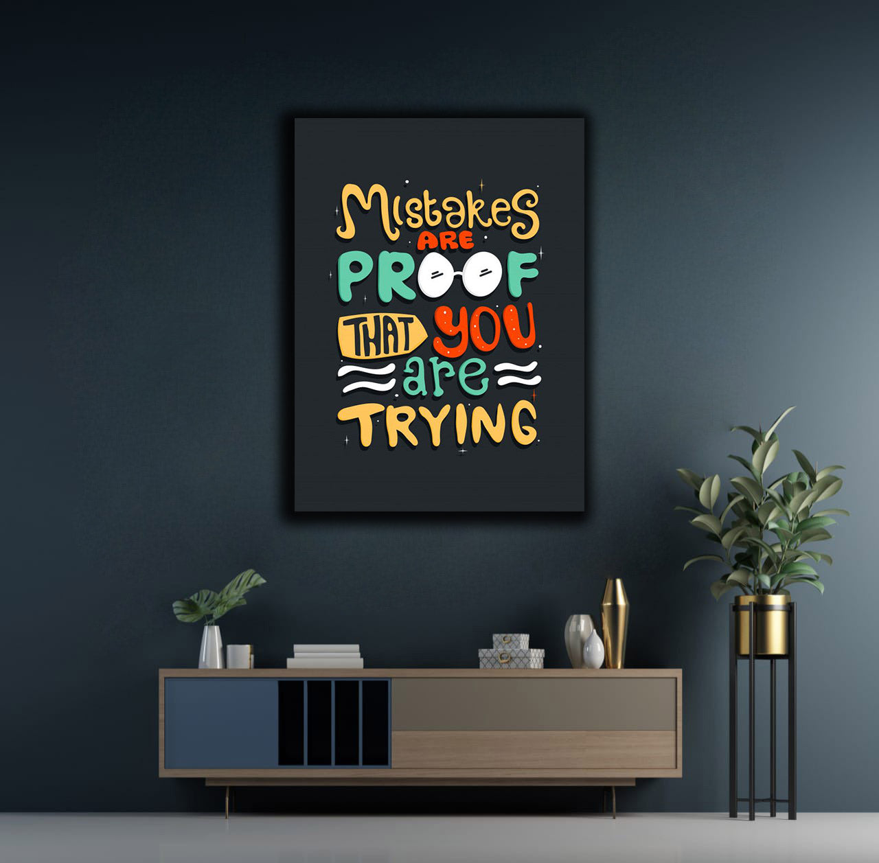 The "Mistakes Are Proof That You’re Trying" wall art is more than just a decoration; it's a statement of resilience and persistence. Perfect for both office and home settings, this canvas art is designed to inspire and motivate every time you see it. The sleek design and high-quality frame make it a versatile addition to any room, fitting seamlessly with various decor styles. Whether you're looking to uplift your workspace or add a meaningful touch to your living area, this wall art painting is an ideal choice. Embrace the beauty of mistakes and the power of trying with this stunning wall art, crafted to elevate your interior design.