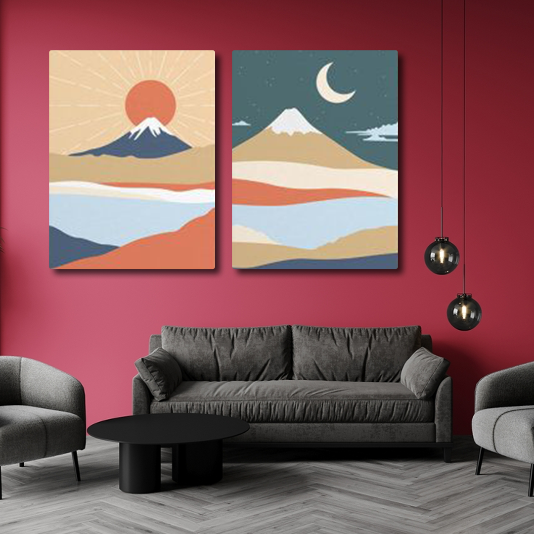 Elevate your home decor with our Mountain Landscape (2 Panel) Wall Art. This captivating canvas art showcases a majestic mountain scene, divided into two panels for a modern and dynamic display. The high-resolution print captures the serene beauty of nature, making it an excellent choice for adding sophistication and calm to your living space. Perfect for living rooms, offices, or any area that needs a touch of elegance, this wall art design is a standout addition to any wall decor. Bring nature's tranquility into your home with this exquisite wall painting.