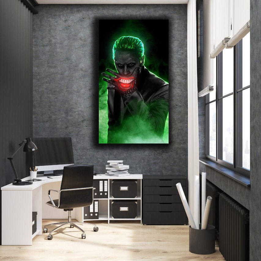 Transform your living space with the "Su Squad Joker" Wall Art, a striking piece of canvas art that brings the iconic Joker character to life. This vibrant wall painting showcases a colorful and energetic design, making it an ideal choice for adding a bold, contemporary flair to your home decor. Whether you’re looking to enhance your living room, office, or entertainment space, this piece of wall decor is sure to make a statement. The high-quality print on durable canvas ensures long-lasting beauty and impact. Perfect for fans of unique wall art and modern design, it’s a great addition to any collection of wall frames or canvas art. Elevate your interior design with this eye-catching Joker artwork today!