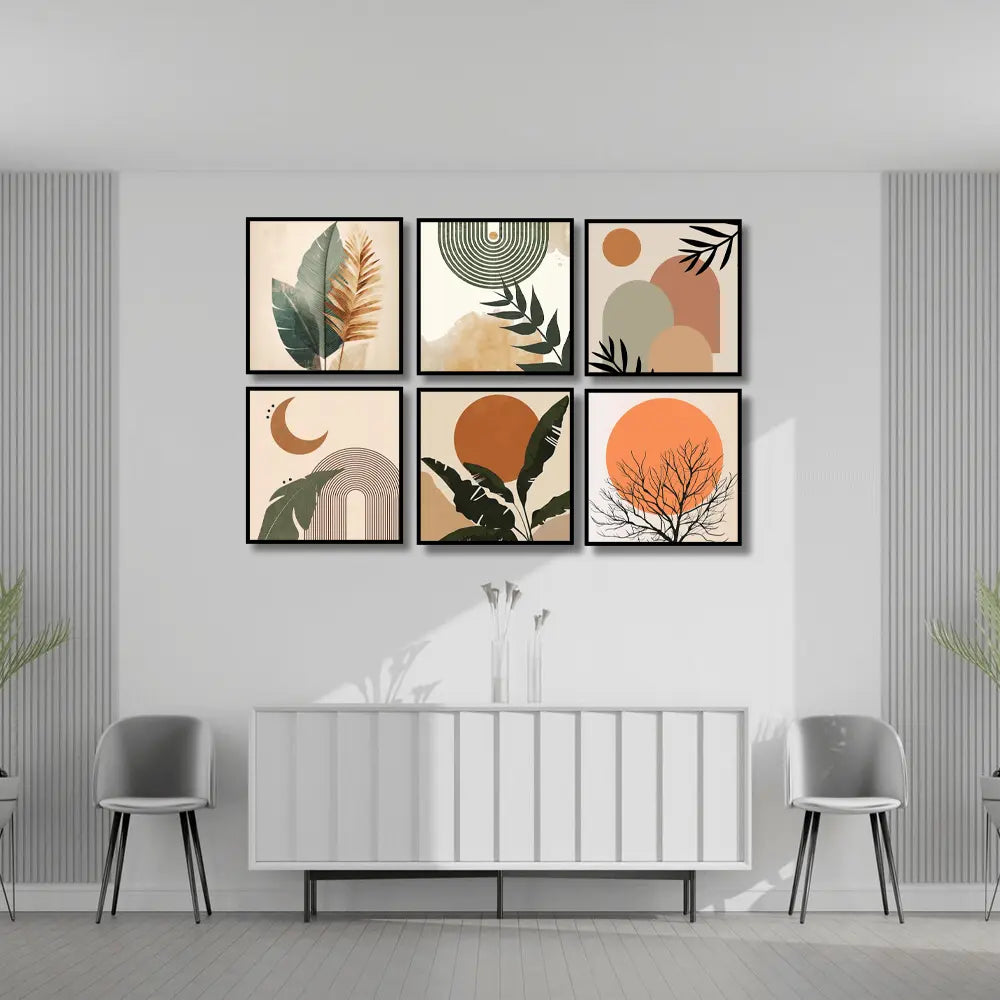 Transform your living space with our Sun Leaves Line Geometry Abstract (6-Panel) Wall Art, a breathtaking piece that marries nature with modern design. This exquisite canvas art showcases an intricate interplay of sun leaves and geometric lines, offering a fresh perspective on wall decor. Each panel is crafted to create a cohesive and stylish visual impact, making it an ideal choice for anyone looking to enhance their wall art collection. Perfect for living rooms, bedrooms, or offices, this artwork serves as an inspiring focal point. It's not just a wall painting; it's a celebration of design and color that brings warmth and creativity to any environment. Elevate your decor game with this unique piece that embodies both elegance and artistry, seamlessly fitting into any wall design in Pakistan.