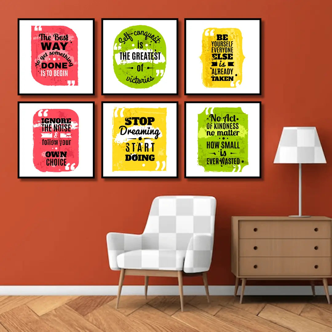 Transform your living or working environment with our Synthetic Motivational Quote (6 Panel) Wall Art. This stunning canvas art features an array of uplifting quotes, designed to inspire and motivate you daily. Each of the six panels creates a cohesive yet dynamic display, making it an excellent choice for those looking to enhance their wall decor. Crafted with high-quality materials, this wall art not only serves as a beautiful decoration but also sparks inspiration and positivity. Ideal for homes, offices, or as a thoughtful gift, this motivational wall art painting is a perfect addition to any room. Make a statement with this unique piece of wall decoration that reflects your values and aspirations while adding a modern touch to your space.